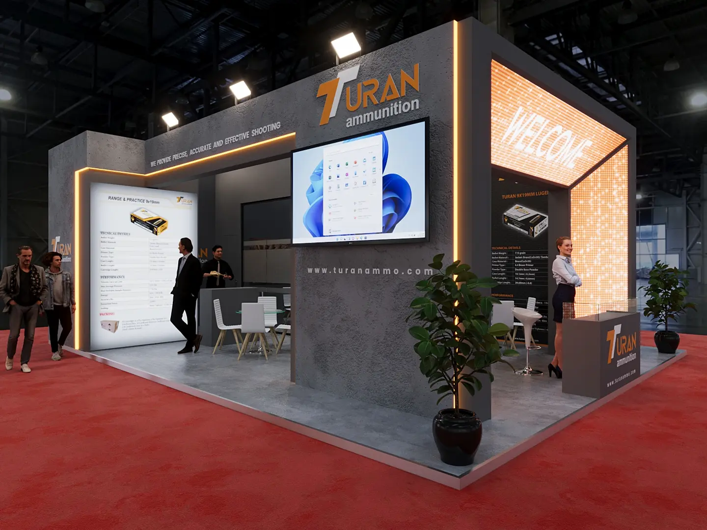 Portakal Tasarım provides full service for your exhibition stand project. 3D Draw, Visual Print, Application, Cleaning and Delivery with full service. You will just bring your products.